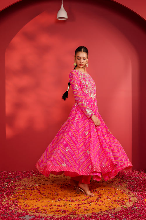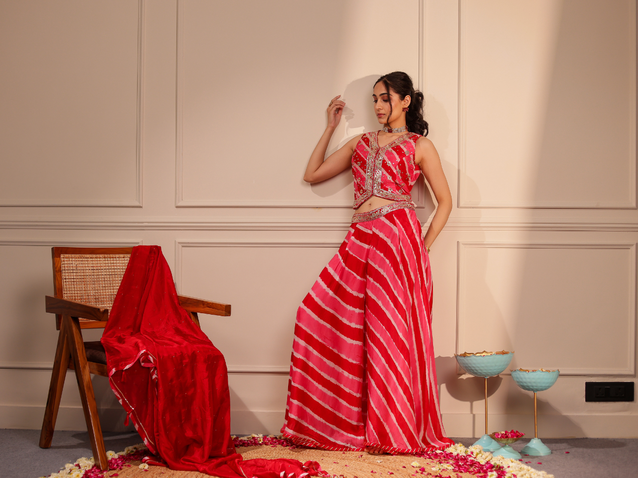 Lavanya Pink Pure Organza Silk Leheriya Lehenga Set
